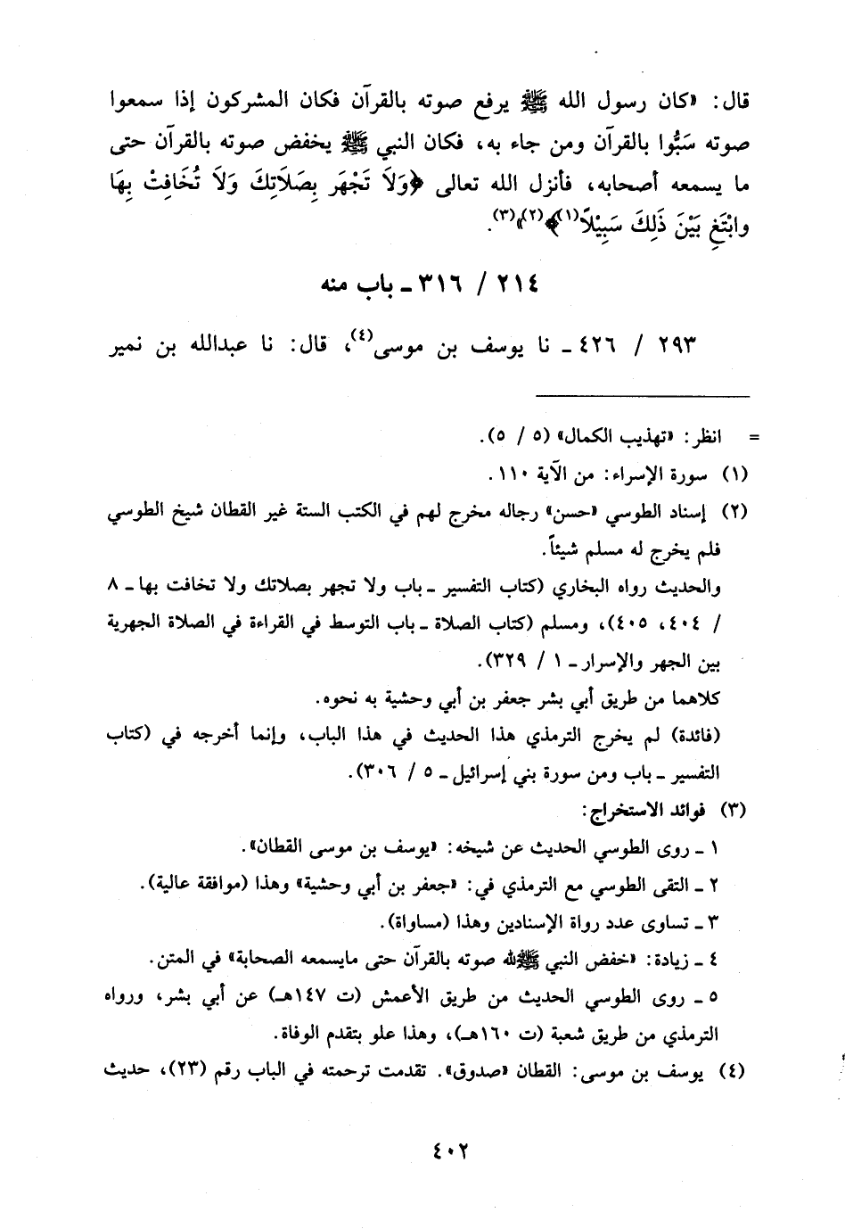 293 - / 426 نَا يُوسُفُ بْنُ مُوسَى قَالَ نَا عَبْدُ اللَّهِ بْنُ نُمَيْرٍ