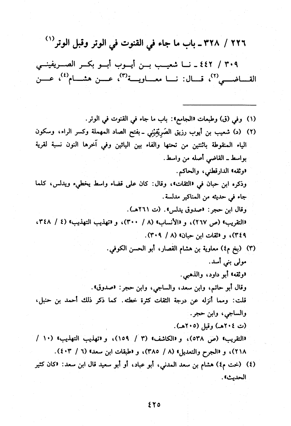 226 - / 328 بَابُ مَا جَاءَ فِي الْقُنُوتِ فِي الْوِتْرِ وَقَبْلَ الْوِتْرِ