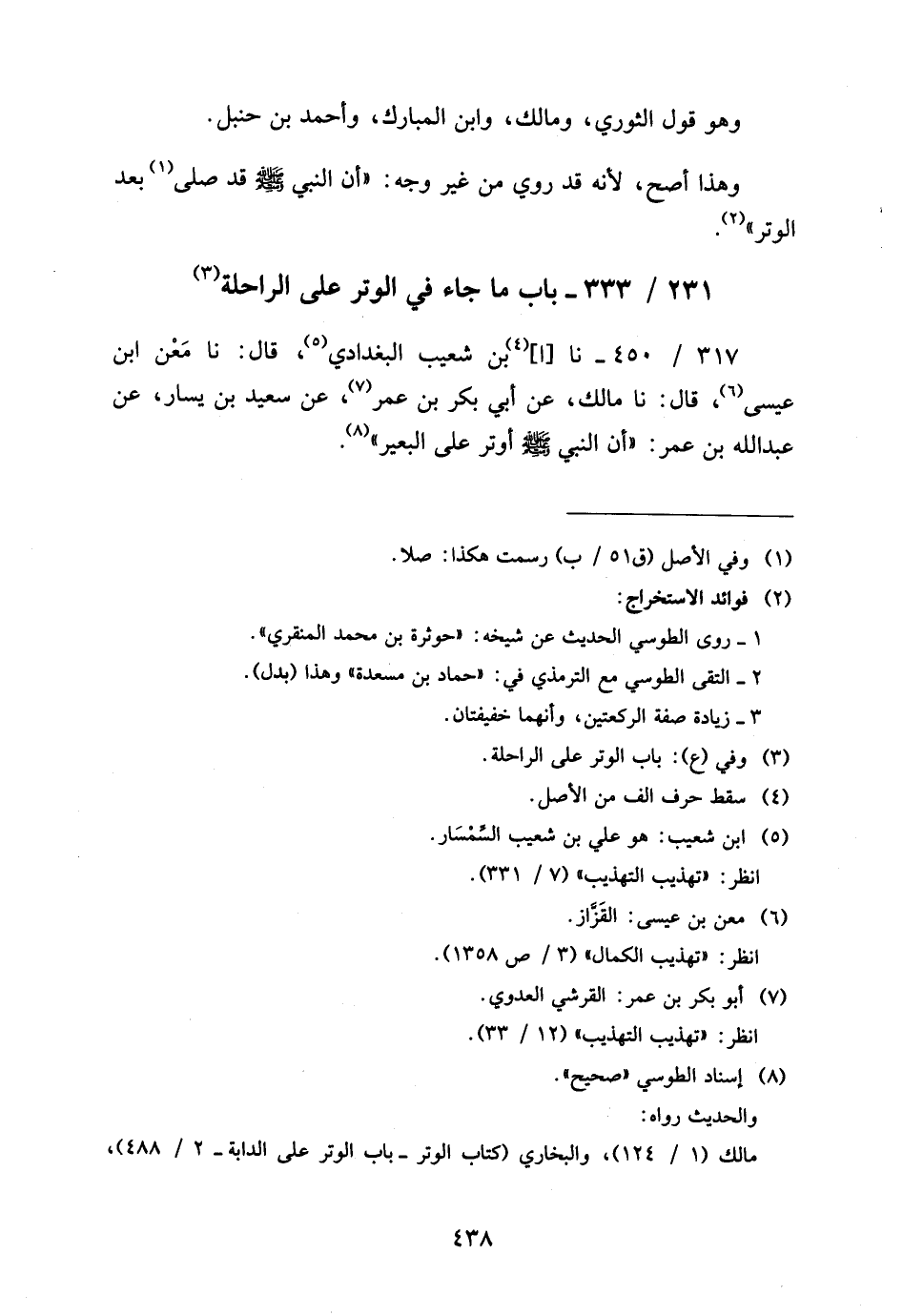 231 - / 333 بَابُ مَا جَاءَ فِي الْوِتْرِ عَلَى الرَّاحِلَةِ