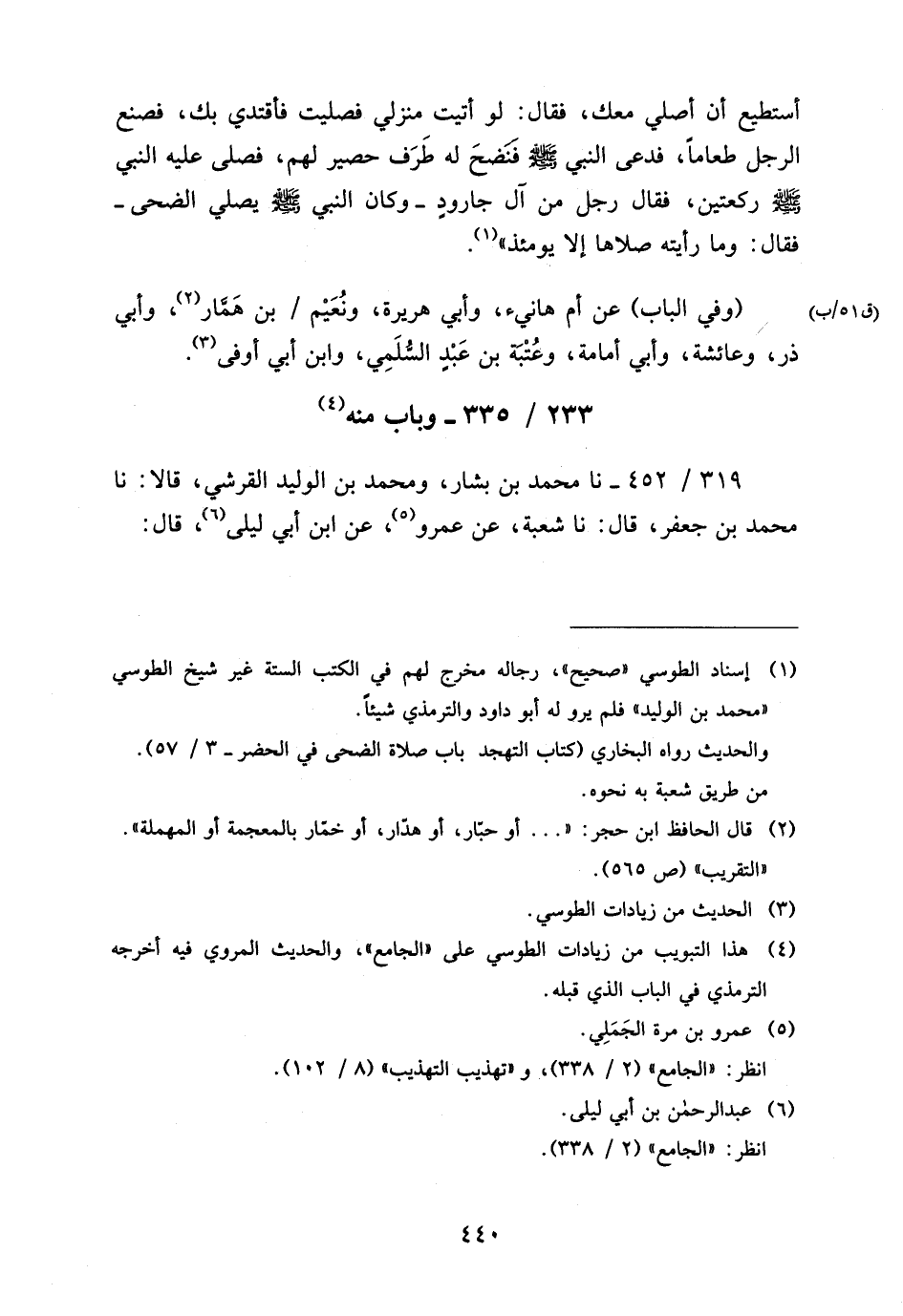 319 - / 452 نَا مُحَمَّدُ بْنُ بَشَّارٍ وَمُحَمَّدُ بْنُ الْوَلِيدِ الْقُرَشِيُّ قَالا نَا مُحَمَّدُ بْنُ جَعْفَرٍ قَالَ نَا شُعْبَةُ عَنْ عَمْرٍو عَنِ ابْنِ أَبِي لَيْلَى قَالَ