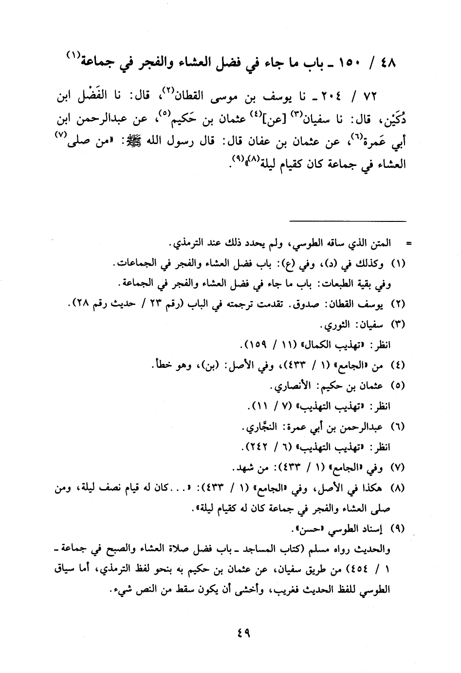 48 - / 150 بَابُ مَا جَاءَ فِي فَضْلِ الْعِشَاءِ وَالْفَجْرِ فِي جَمَاعَةٍ