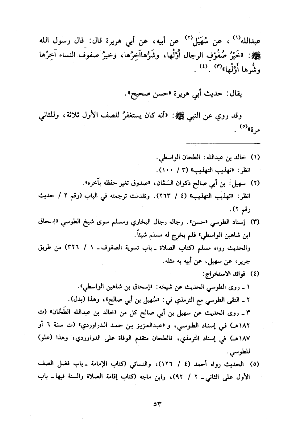 عَبْدِ اللَّهِ عَنْ سُهَيْلٍ عَنْ أَبِيهِ عَنْ أَبِي هُرَيْرَةَ قَالَ قَالَ رَسُولُ اللَّهِ صَلَّى اللَّهُ عَلَيْهِ وَسَلَّمَ خَيْرُ صُفُوفِ الرِّجَالِ أَوَّلُهَا وَشَرُّهَا آخِرُهَا وَخَيْرُ صُفُوفِ النِّسَاءِ آخِرُهَا وَشَرُّهَا أَوَّلُهَا
