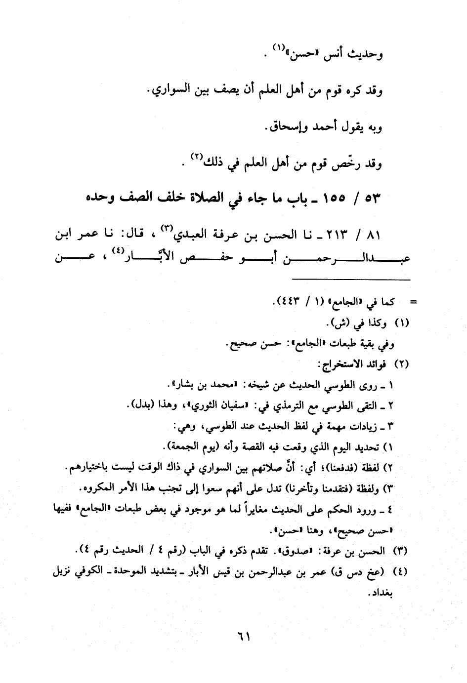 53 - / 155 بَابُ مَا جَاءَ فِي الصَّلاةِ خَلْفَ الصَّفِّ وَحْدَهُ