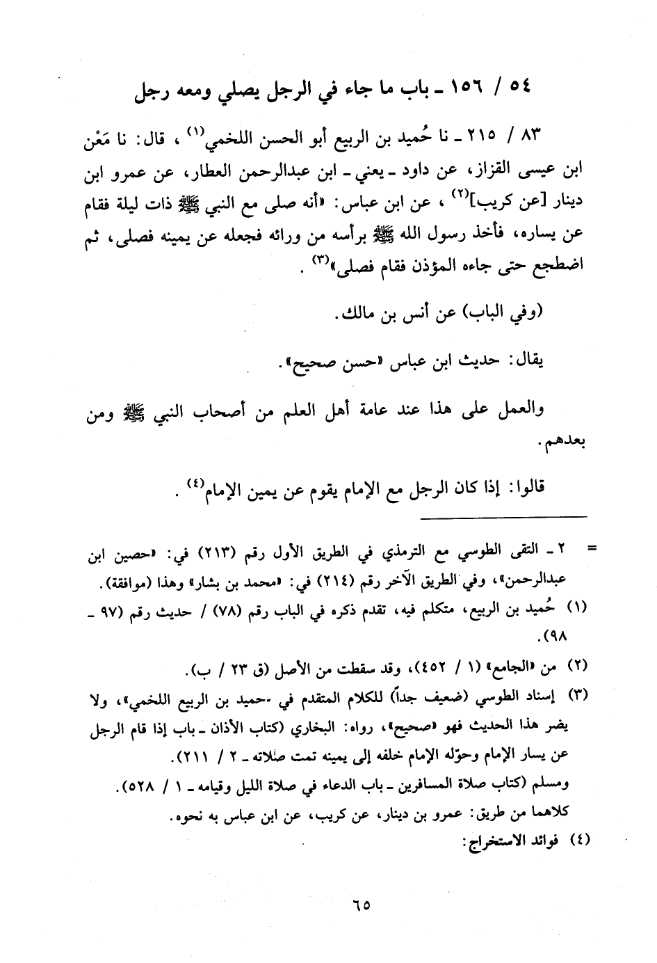 54 - / 156 بَابُ مَا جَاءَ فِي الرَّجُلِ يُصَلِّي وَمَعَهُ رَجُلٌ