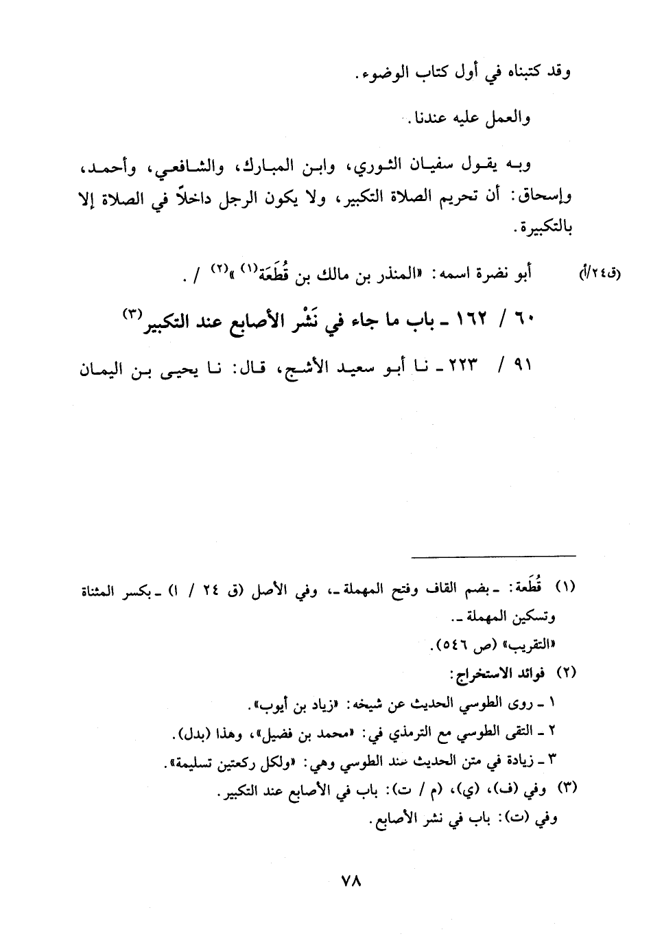 60 - / 162 بَابُ مَا جَاءَ فِي نَشْرِ الأَصَابِعِ عِنْدَ التَّكْبِيرِ