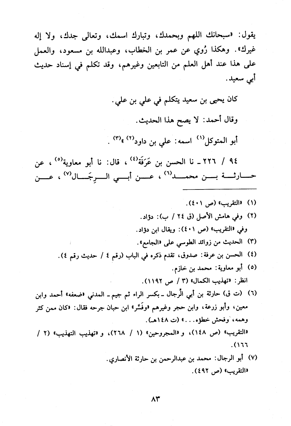 94 - / 226 نَا الْحَسَنُ بْنُ عَرَفَةَ قَالَ نَا أَبُو مُعَاوِيَةَ عَنْ حَارِثَةَ بْنِ مُحَمَّدٍ عَنْ أَبِي الرِّجَالِ عَنْ