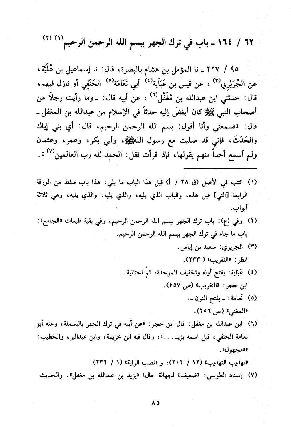 62 - / 164 بَابٌ فِي تَرْكِ الْجَهْرِ بِبِسْمِ اللَّهِ الرَّحْمَنِ الرَّحِيمِ