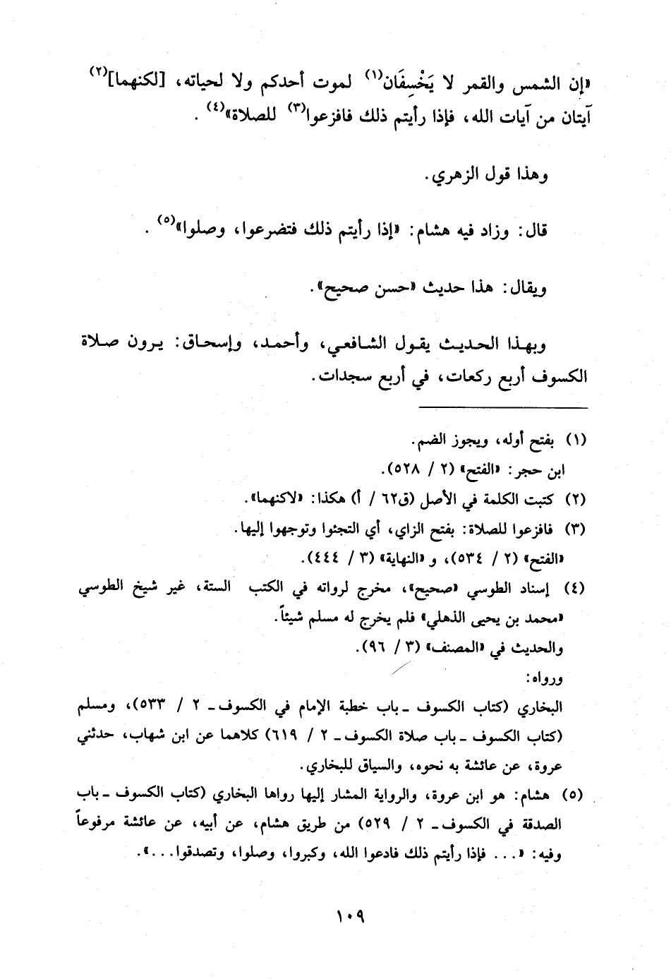 إِنَّ الشَّمْسَ وَالْقَمَرَ لَا يَخْسِفَانِ لِمَوْتِ أَحَدِكُمْ وَلا لِحَيَاتِهِ لَكِنَّهُمَا آيَتَانِ مِنْ آيَاتِ اللَّهِ فَإِذَا رَأَيْتُمْ ذَلِكَ فَافْزَعُوا لِلصَّلاةِ