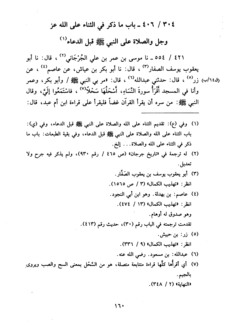 304 - / 406 بَابُ مَا ذُكِرَ فِي الثَّنَاءِ عَلَى اللَّهِ عَزَّ وَجَلَّ وَالصَّلاةِ عَلَى النَّبِيِّ صَلَّى اللَّهُ عَلَيْهِ وَسَلَّمَ قَبْلَ الدُّعَاءِ