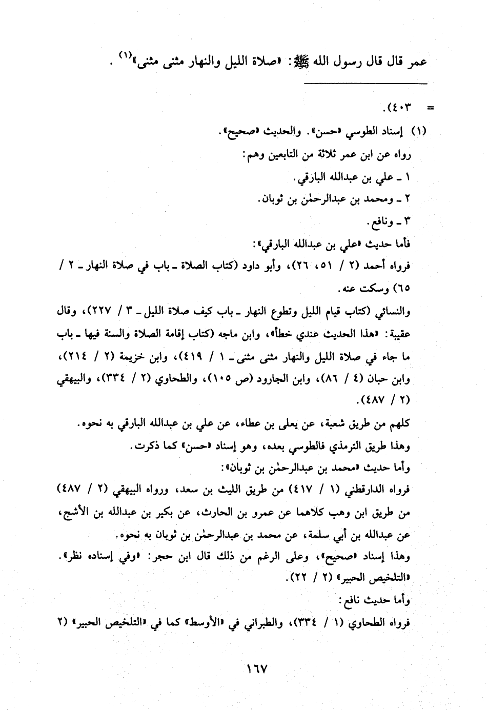 عُمَرَ قَالَ قَالَ رَسُولُ اللَّهِ صَلَّى اللَّهُ عَلَيْهِ وَسَلَّمَ صَلاةُ اللَّيْلِ وَالنَّهَارِ مَثْنَى مَثْنَى
