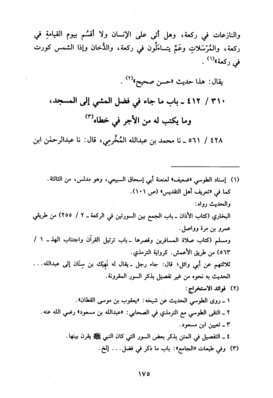 310 - / 412 بَابُ مَا جَاءَ فِي فَضْلِ الْمَشْيِ إِلَى الْمَسْجِدِ وَمَا يُكْتَبُ لَهُ مِنَ الأَجْرِ فِي خُطَاهُ