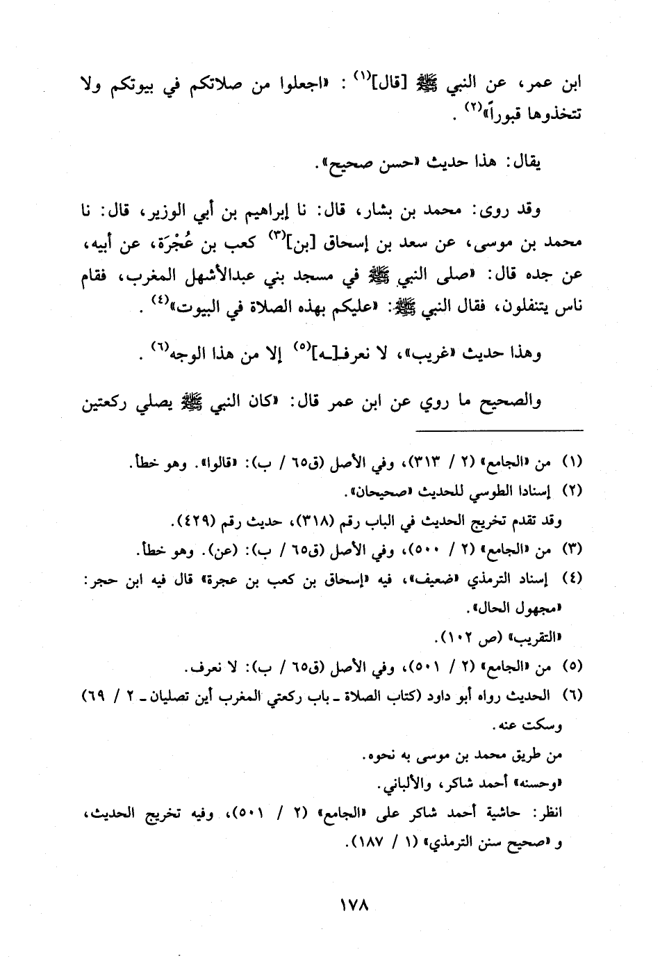 ابْنِ عُمَرَ عَنِ النَّبِيِّ صَلَّى اللَّهُ عَلَيْهِ وَسَلَّمَ قَالَ اجْعَلُوا مِنْ صَلاتِكُمْ فِي بُيُوتِكُمْ وَلا تَتَّخِذُوهَا قُبُورًا