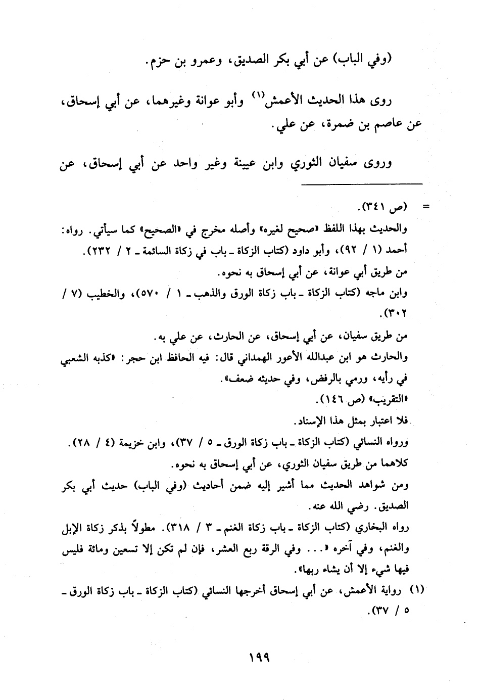 رَوَى هَذَا الْحَدِيثَ الأَعْمَشُ وَأَبُو عَوَانَةَ وَغَيْرُهُمَا عَنْ أَبِي إِسْحَاقَ عَنْ عَاصِمِ بْنِ ضَمْرَةَ عَنْ عَلِيٍّ