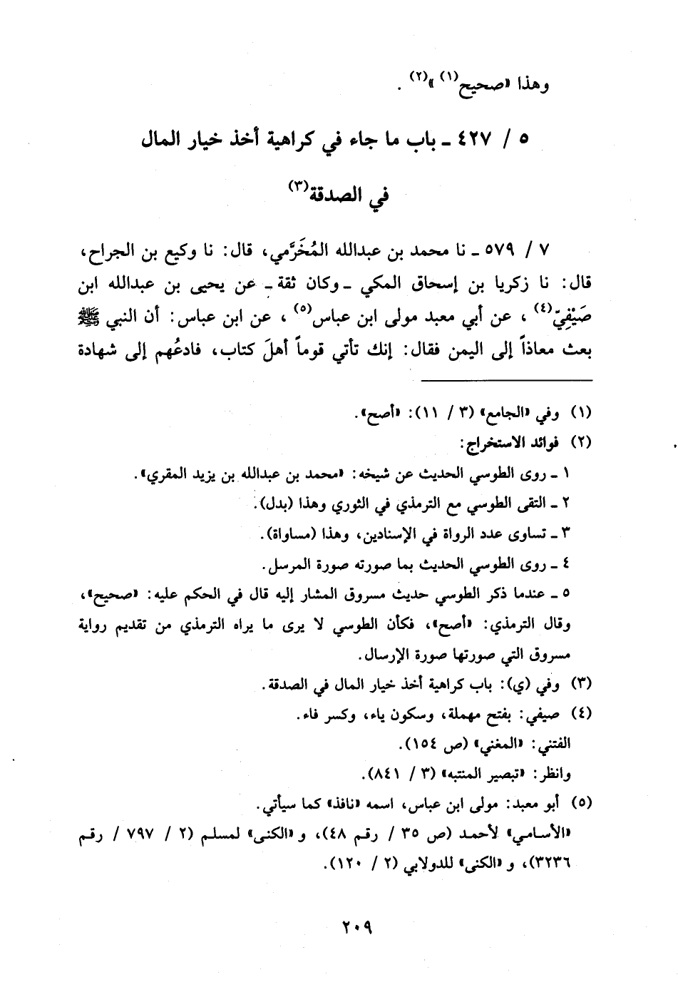 5 - / 427 بَابُ مَا جَاءَ فِي كَرَاهِيَةِ أَخْذِ خِيَارِ الْمَالِ فِي الصَّدَقَةِ