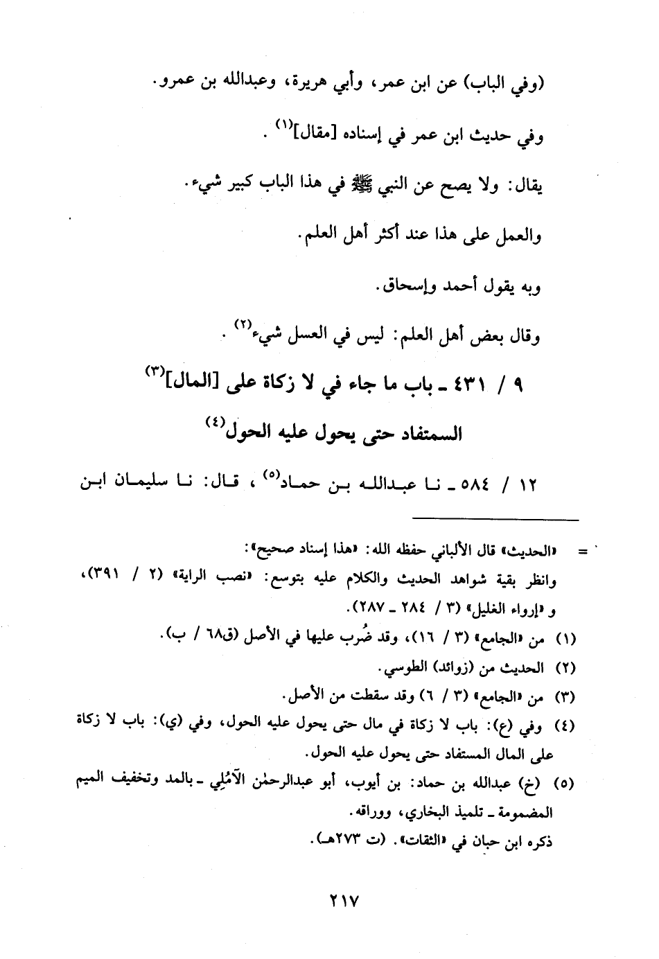 9 - / 431 بَابَ مَا جَاءَ فِي لَا زَكَاة على المَال السمنقاد حَتَّى يَحُولَ عَلَيْهِ الْحَوْلُ