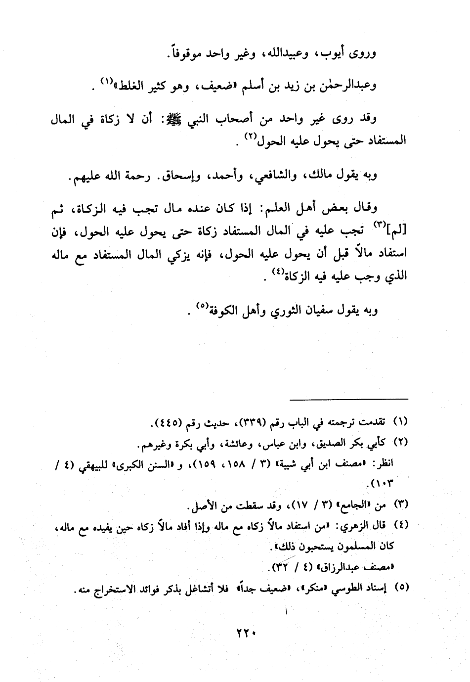 وَقَدْ رَوَى غَيْرُ وَاحِدٍ مِنْ أَصْحَابِ النَّبِيِّ صَلَّى اللَّهُ عَلَيْهِ وَسَلَّمَ أَنْ لَا زَكَاةَ فِي الْمَالِ الْمُسْتَفَادِ حَتَّى يَحُولَ عَلَيْهِ الْحَوْلُ