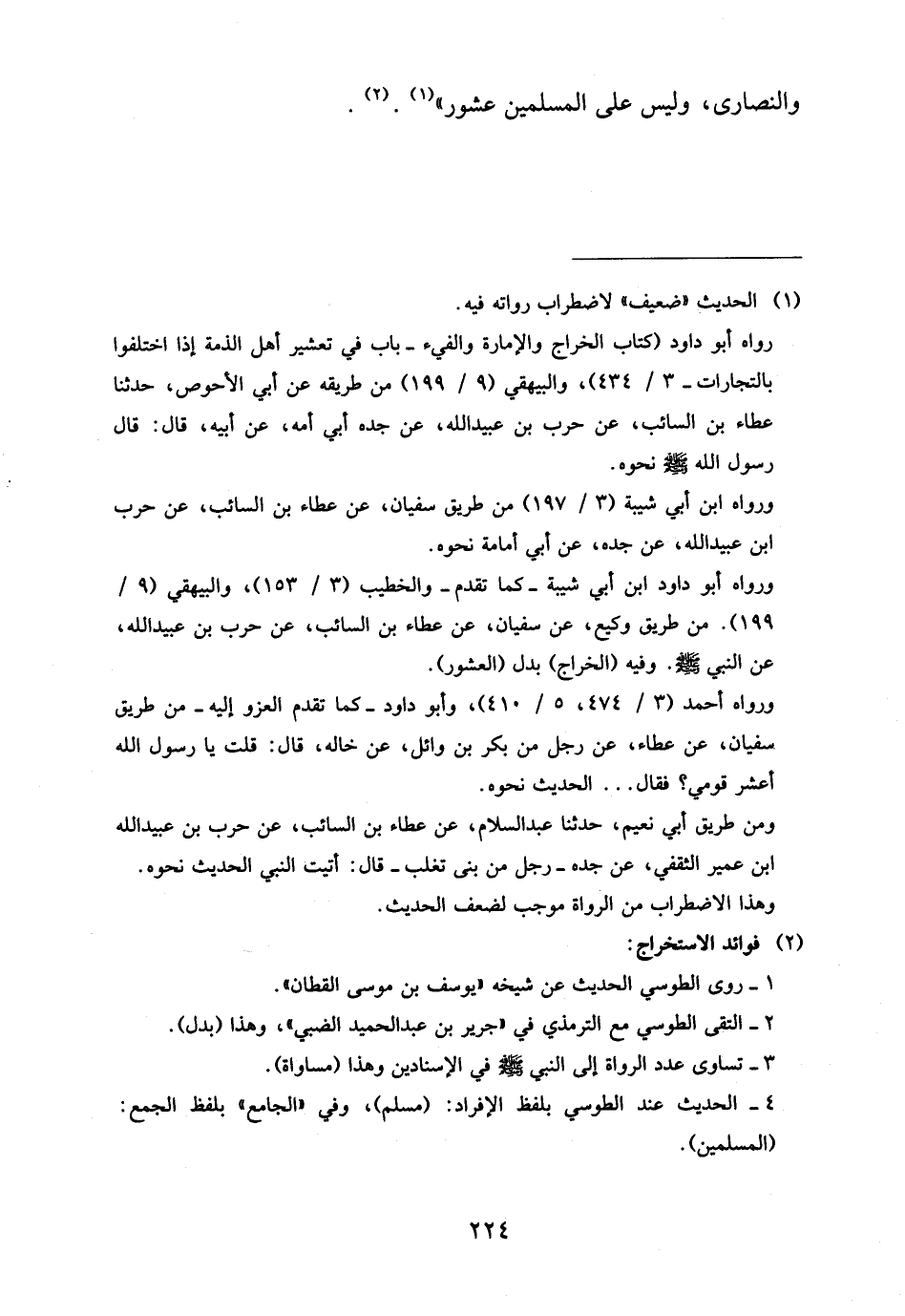 وَالنَّصَارَى وَلَيْسَ عَلَى الْمُسْلِمِينَ عُشُورٌ