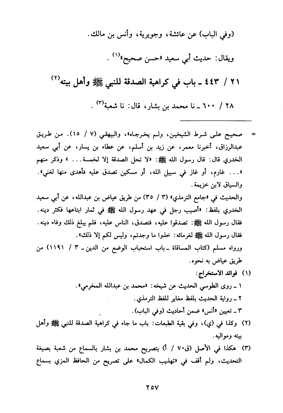 21 - / 443 بَابٌ فِي كَرَاهِيَةِ الصَّدَقَةِ لِلنَّبِيِّ صَلَّى اللَّهُ عَلَيْهِ وَسَلَّمَ وَأَهْلِ بَيْتِهِ