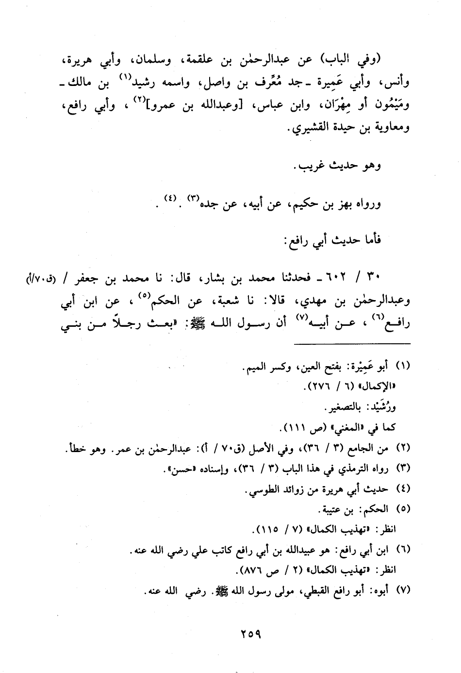 فَأَمَّا حَدِيثُ أَبِي رَافِعٍ 30 / 602 فَحَدَّثَنَا مُحَمَّدُ بْنُ بَشَّارٍ قَالَ نَا مُحَمَّدُ بْنُ جَعْفَرٍ وَعَبْدُ الرَّحْمَنِ بْنُ مَهْدِيٍّ قَالا نَا شُعْبَةُ عَنِ الْحَكَمِ عَنِ ابْنِ أَبِي رَافِعٍ عَنْ أَبِيهِ أَنَّ رَسُولَ اللَّهِ صَلَّى اللَّهُ عَلَيْهِ وَسَلَّمَ بَعَثَ رَجُلًا من بني