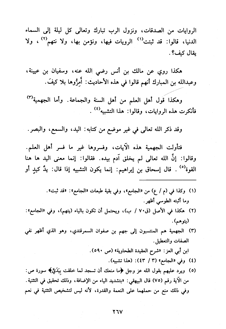 هَكَذَا رُوِيَ عَنْ مَالِكِ بْنِ أَنَسٍ رَضِيَ اللَّهُ عَنْهُ وَسُفْيَانَ بْنِ عُيَيْنَةَ وَعَبْدِ اللَّهِ بْنِ الْمُبَارَكِ أَنَّهُمْ قَالُوا فِي هَذِهِ الأَحَادِيثِ أَمِرُّوهَا بِلا كَيْفَ