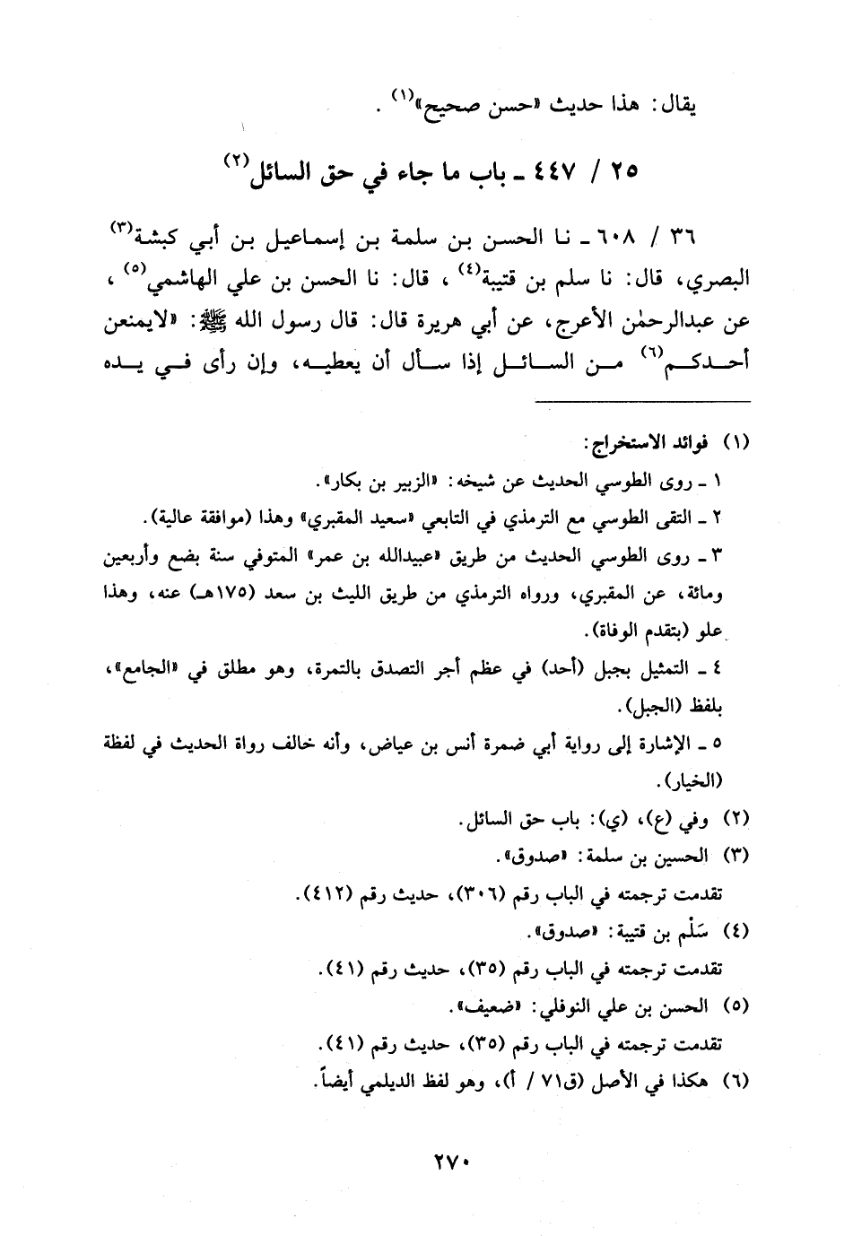 25 - / 447 بَابُ مَا جَاءَ فِي حَقِّ السَّائِلِ