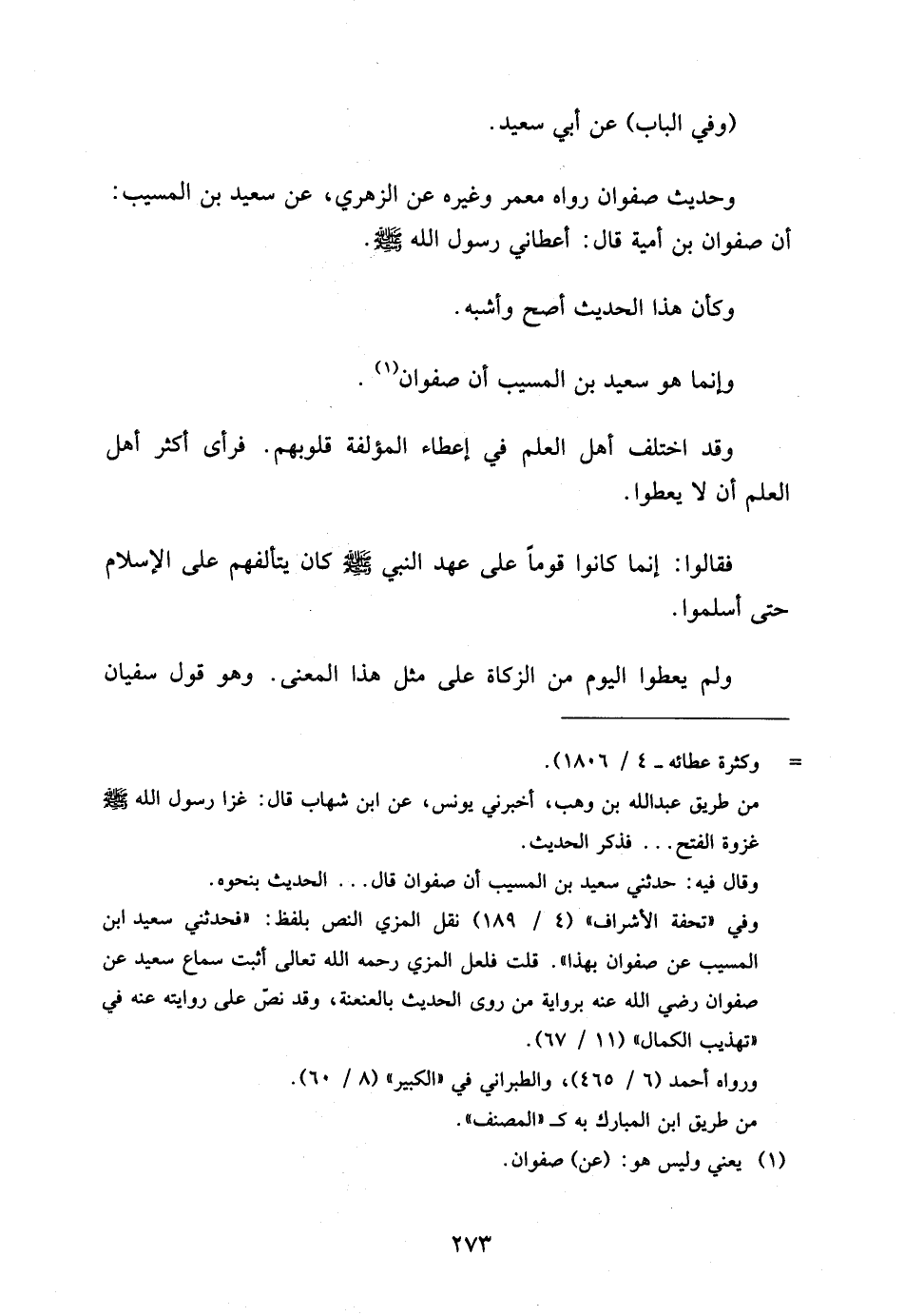وَقَدِ اخْتَلَفَ أَهْلُ الْعِلْمِ فِي إِعْطَاءِ الْمُؤَلَفَّةِ قُلُوبُهُمْ فَرَأَى أَكْثَرُ أَهْلِ الْعِلْمِ أَنْ لَا يُعْطُوا