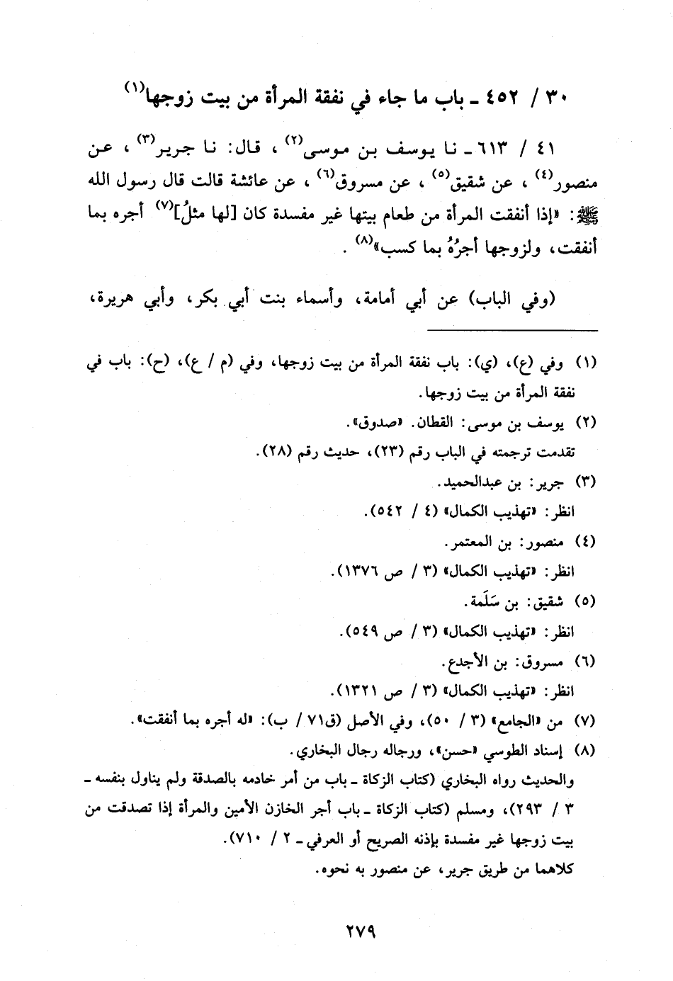 30 - / 452 بَابُ مَا جَاءَ فِي نَفَقَةِ الْمَرْأَةِ مِنْ بَيْتِ زَوْجِهَا