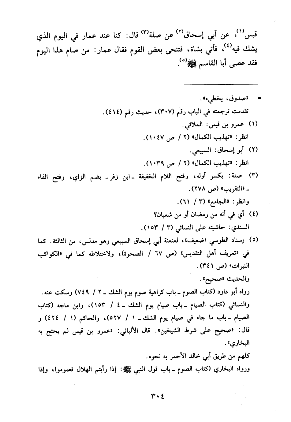 قَيْسٍ عَنْ أَبِي إِسْحَاقَ عَنْ صِلَةَ قَالَ كُنَّا عِنْدَ عَمَّارٍ فِي الْيَوْمِ الَّذِي يُشَكُّ فِيهِ فَأتي فِيهِ فَأُتِيَ بِشَاةٍ فَتَنَحَّى بَعْضُ الْقَوْمِ فَقَالَ عَمَّارٌ مَنْ صَامَ هَذَا الْيَوْمَ فَقَدْ عَصَى أَبَا الْقَاسِمِ صَلَّى اللَّهُ عَلَيْهِ وَسَلَّمَ