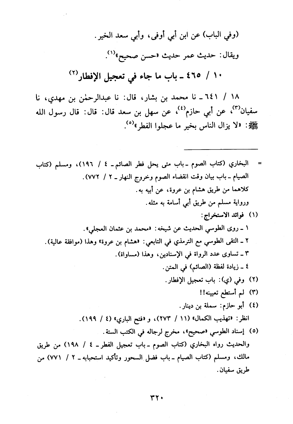 10 - / 465 بَابُ مَا جَاءَ فِي تَعْجِيلِ الإِفْطَارِ
