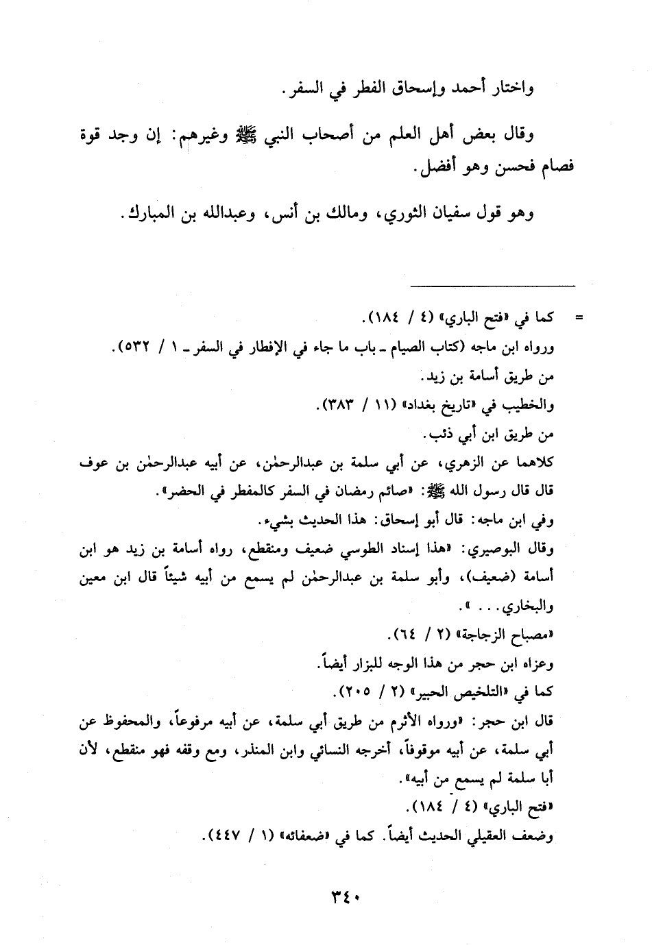 وَاخْتَارَ أَحْمَدُ وَإِسْحَاقُ الْفِطْرَ فِي السَّفَرِ