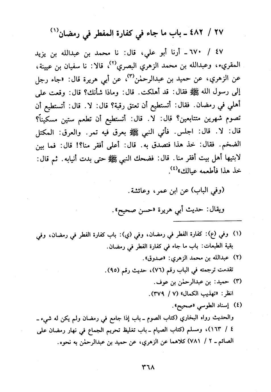 27 - / 482 بَابُ مَا جَاءَ فِي كَفَّارَةِ الْمُفْطِرِ فِي رَمَضَانَ