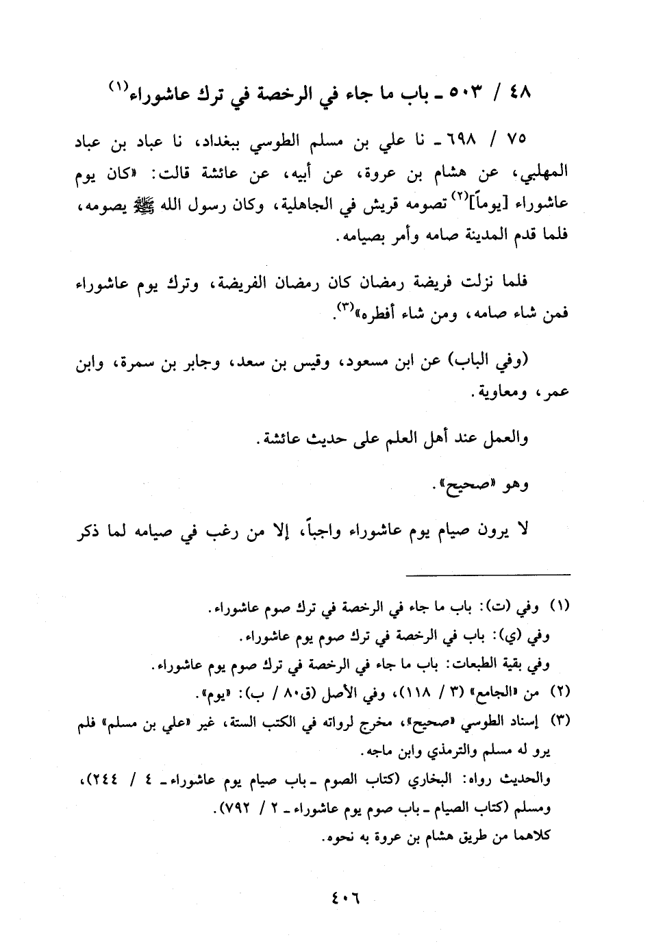 48 - / 503 بَابُ مَا جَاءَ فِي الرُّخْصَةِ فِي تَرْكِ عَاشُورَاءَ