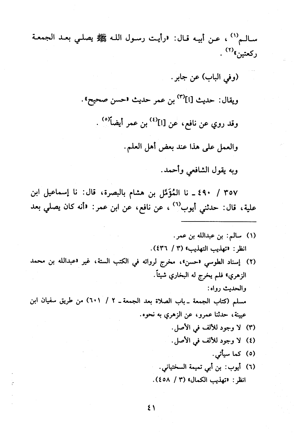 357 - / 490 نَا الْمُؤَمَّلُ بْنُ هِشَامٍ بِالْبَصْرَةِ قَالَ نَا إِسْمَاعِيل ابْن عُلَيَّةَ قَالَ حَدَّثَنِي أَيُّوبُ عَنْ نَافِعٍ عَنِ ابْنِ عُمَرَ أَنَّهُ كَانَ يُصَلِّي بَعْدَ