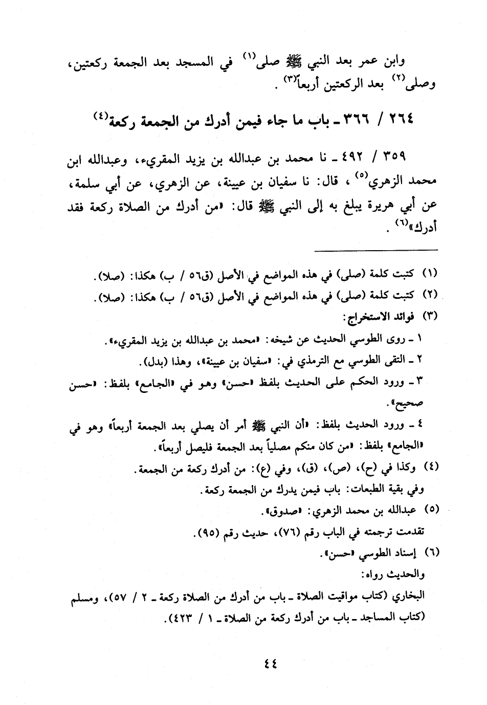 264 - / 366 بَابُ مَا جَاءَ فِيمَنْ أَدْرَكَ مِنَ الْجُمُعَةِ رَكْعَةً