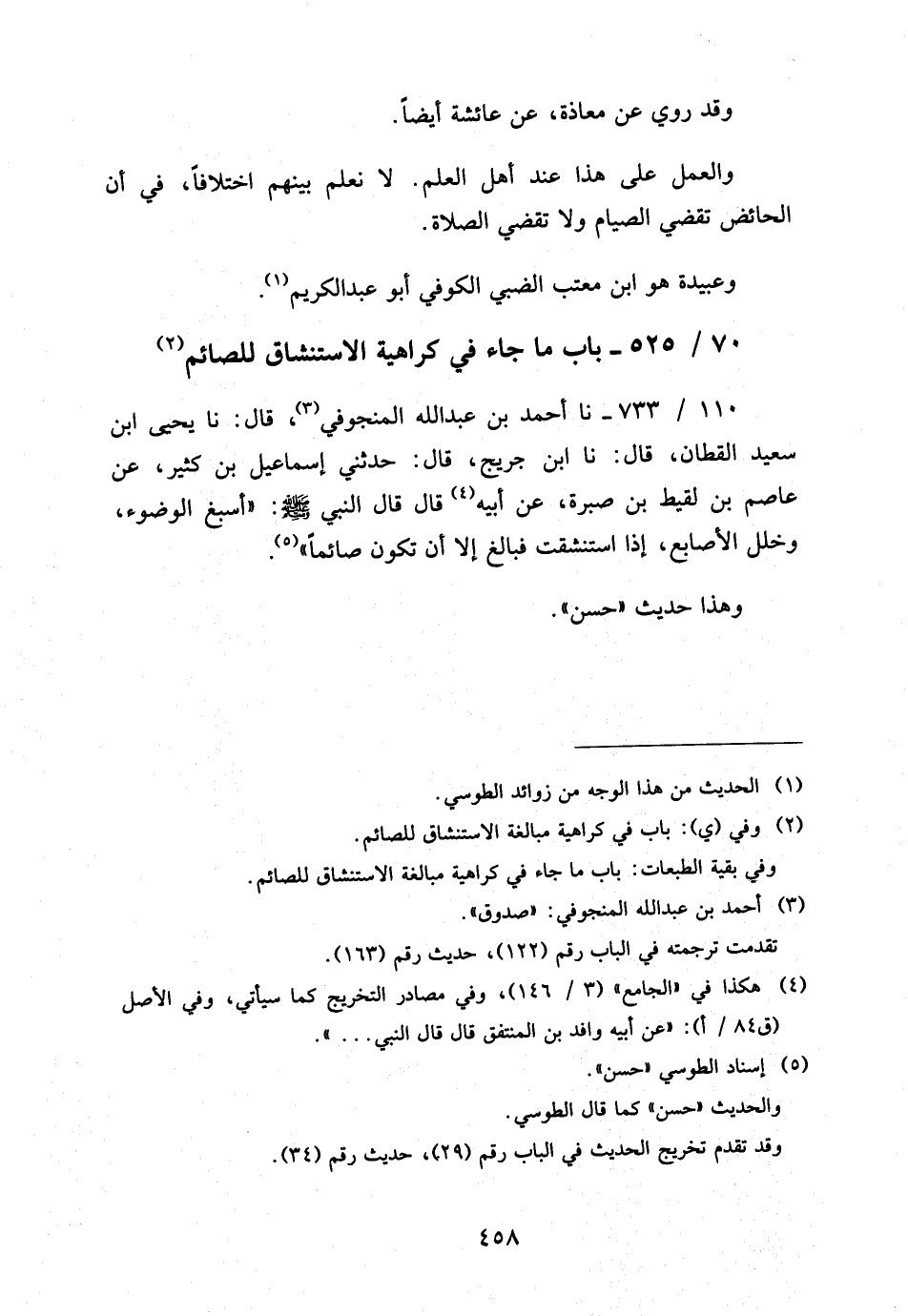 70 - / 525 بَابُ مَا جَاءَ فِي كَرَاهِيَةِ الاسْتِنْشَاقِ لِلصَّائِمِ