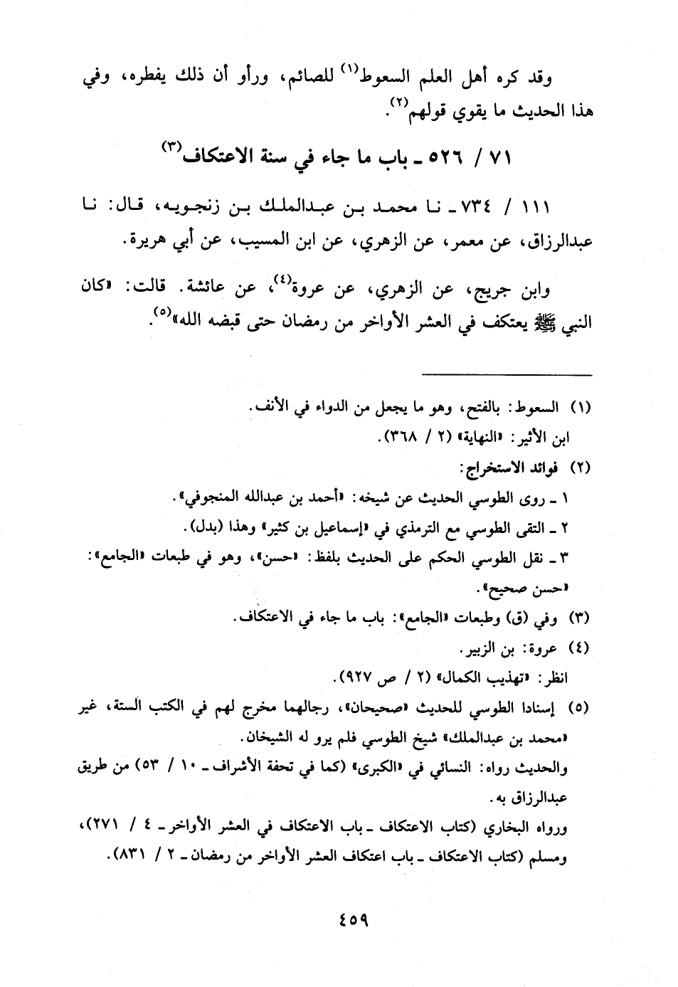 71 - / 526 بَابُ مَا جَاءَ فِي سُنَّةِ الاعْتِكَافِ