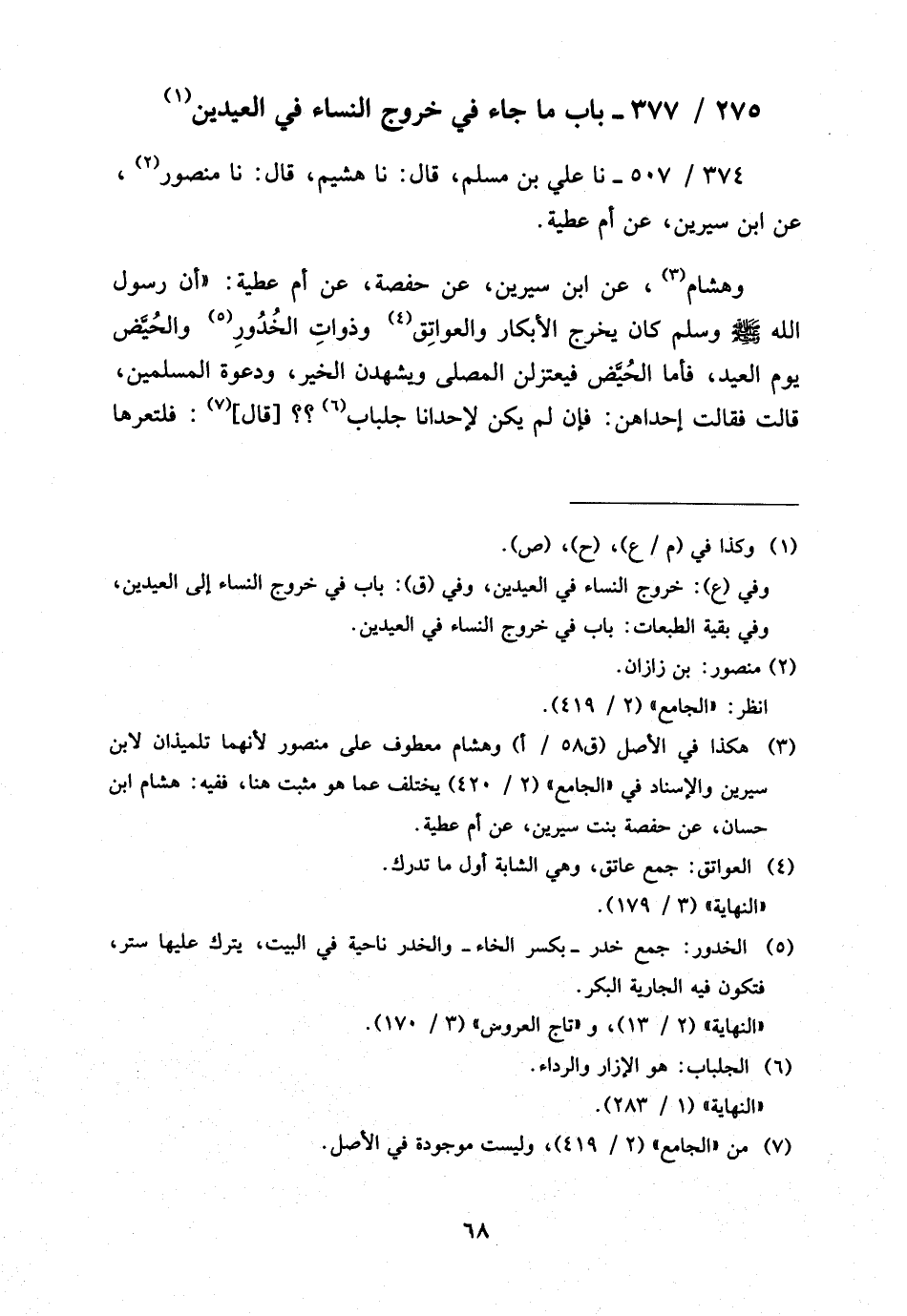 275 - / 377 بَابُ مَا جَاءَ فِي خُرُوجِ النِّسَاءِ فِي الْعِيدَيْنِ