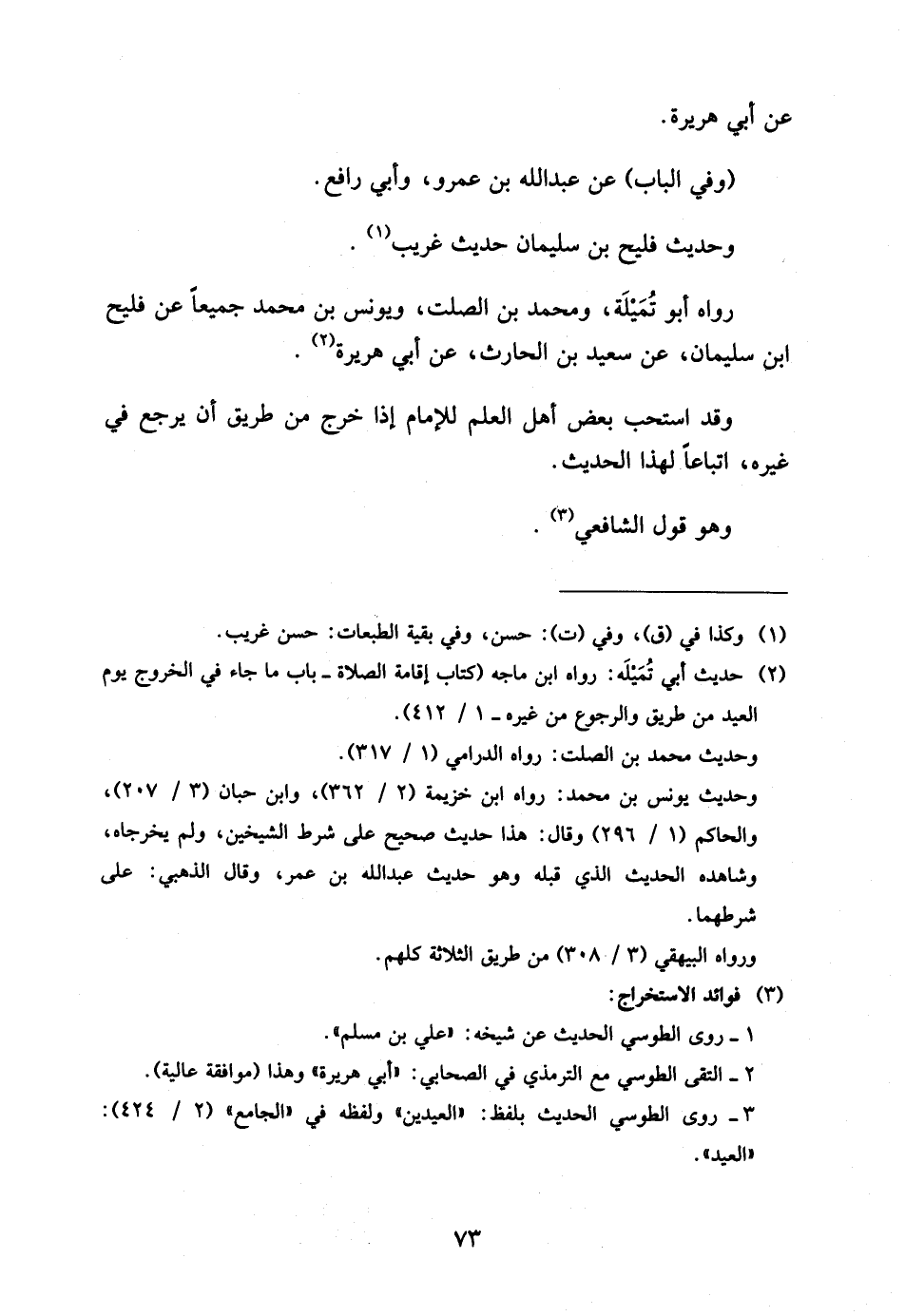 رَوَاهُ أَبُو تُمَيْلَةَ وَمُحَمَّدُ بْنُ الصَّلْتِ وَيُونُسُ بْنُ مُحَمَّدٍ جَمِيعًا عَن فليح ابْن سُلَيْمَانَ عَنْ سَعِيدِ بْنِ الْحَارِثِ عَنْ أَبِي هُرَيْرَةَ