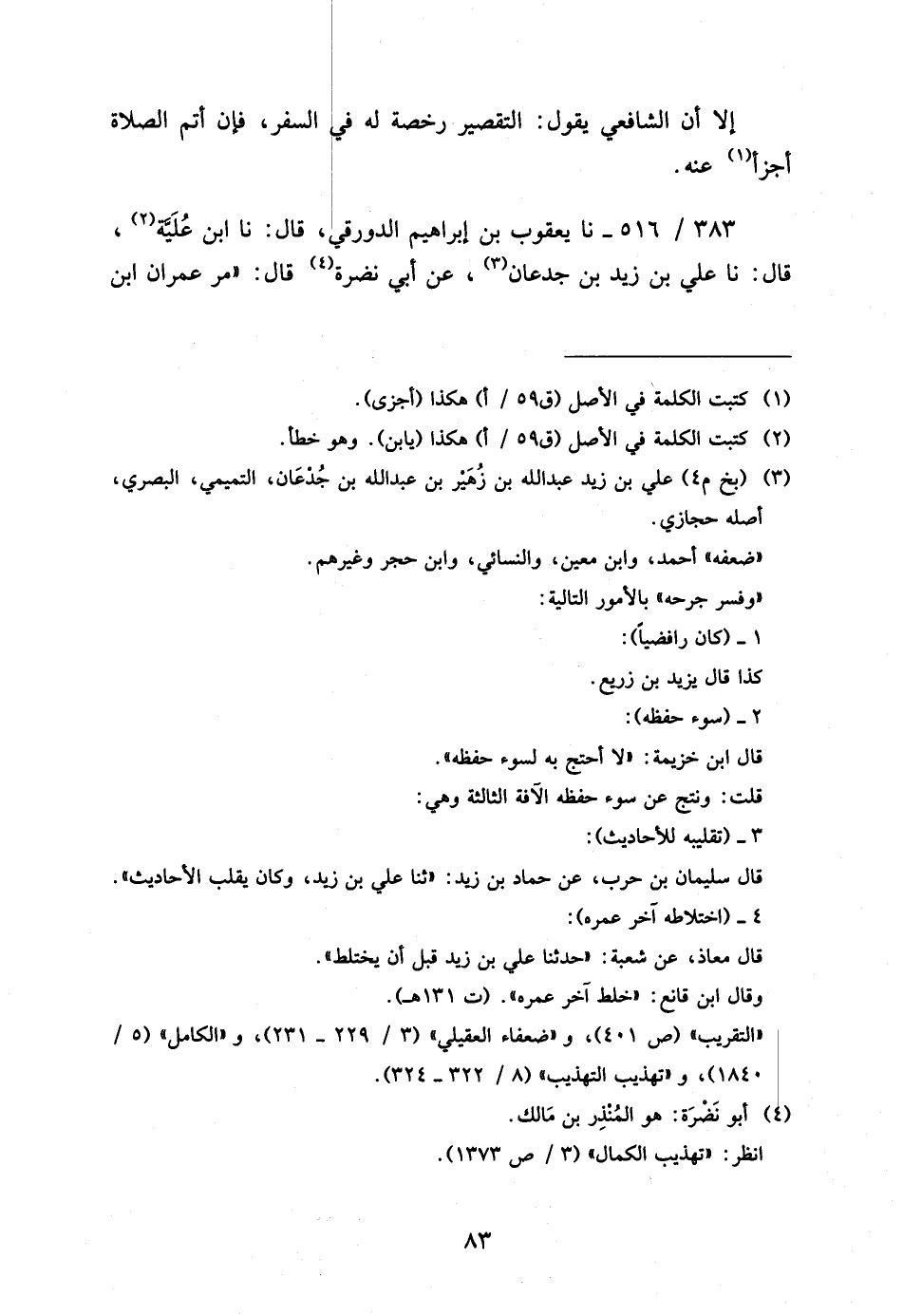 383 - / 516 نَا يَعْقُوبُ بْنُ إِبْرَاهِيمَ الدَّوْرَقِيُّ قَالَ نَا ابْنُ عُلَيَّةَ قَالَ نَا عَلِيُّ بْنُ زَيْدِ بْنِ جُدْعَانَ عَنْ أَبِي نَضْرَةَ قَالَ مَرَّ عمرَان ابْن