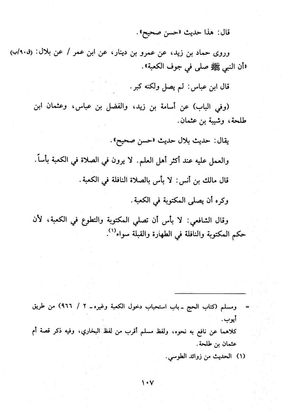 وَالْعَمَلُ عَلَيْهِ عِنْدَ أَكْثَرِ أَهْلِ الْعِلْمِ لَا يَرَوْنَ فِي الصَّلاةِ فِي الْكَعْبَةِ بَأْسًا