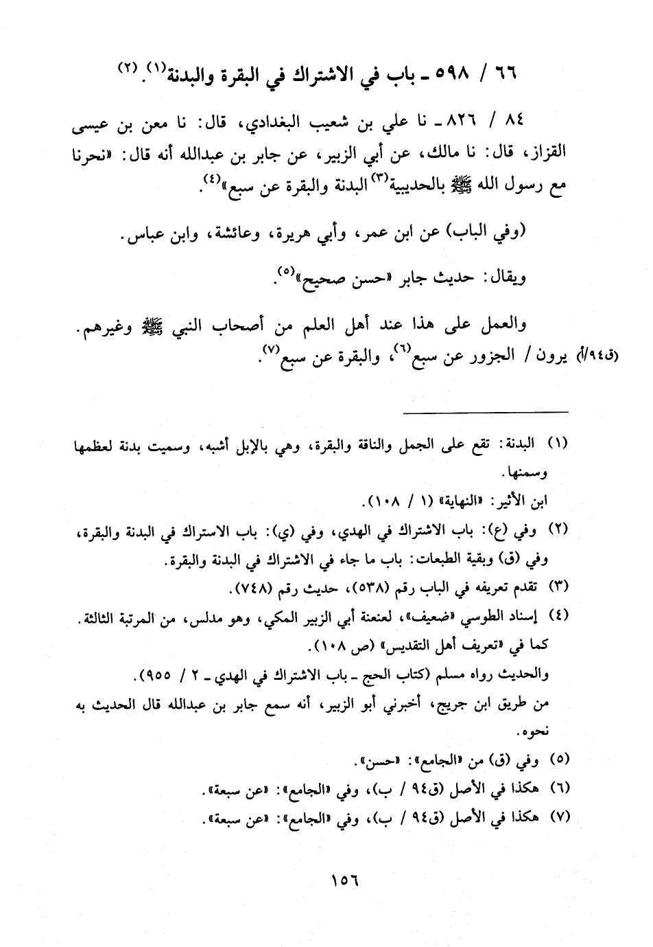66 - / 598 بَابٌ فِي الاشْتِرَاكِ فِي الْبَقَرَةِ وَالْبَدَنَةِ