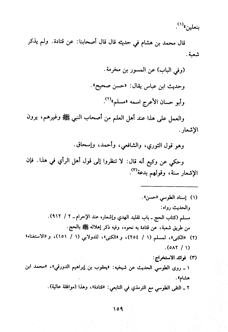 وَالْعَمَلُ عَلَى هَذَا عِنْدَ أَهْلِ الْعِلْمِ مِنْ أَصْحَابِ النَّبِيِّ صَلَّى اللَّهُ عَلَيْهِ وَسَلَّمَ وَغَيْرِهِمْ يَرَوْنَ الإِشْعَارَ