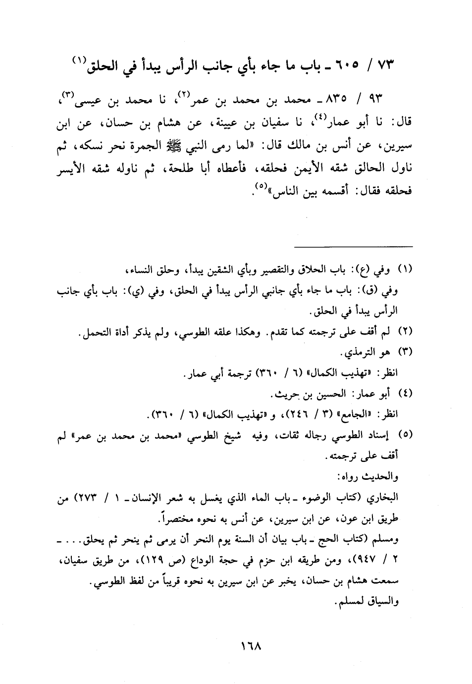 73 - / 605 بَابُ مَا جَاءَ بِأَيِّ جَانِبِ الرَّأْسِ يُبْدَأُ فِي الْحَلْقِ