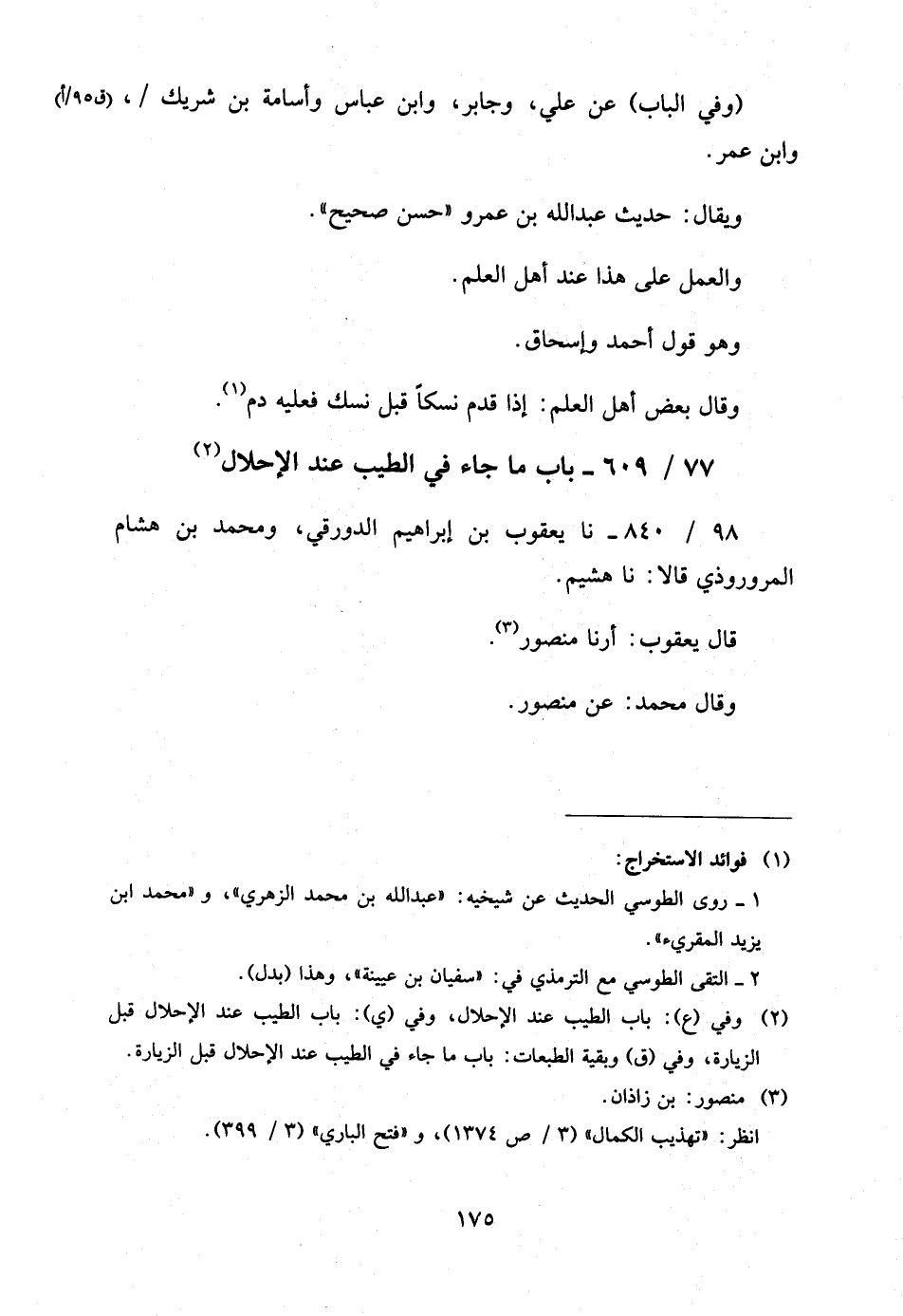 77 - / 609 بَابُ مَا جَاءَ فِي الطِّيبِ عِنْدَ الإِحْلالِ
