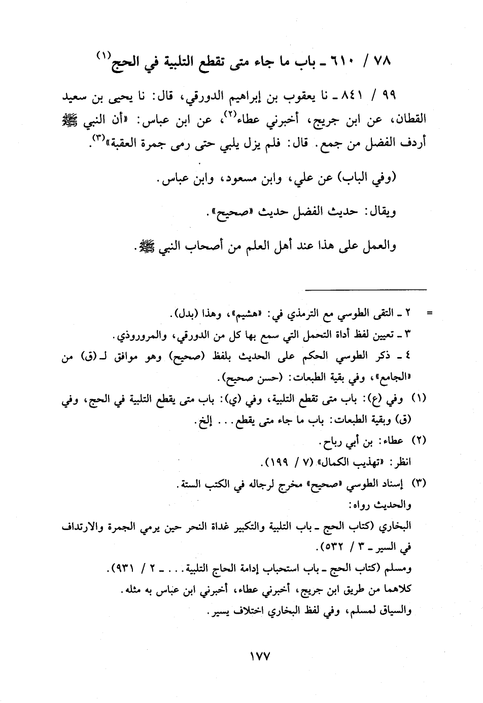 78 - / 610 بَابُ مَا جَاءَ مَتَى تُقْطَعُ التَّلْبِيَةُ فِي الْحَجِّ