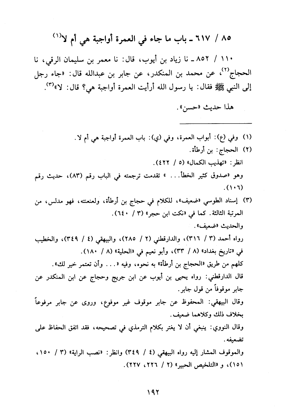 85 - / 617 بَابُ مَا جَاءَ فِي الْعُمْرَةِ أَوَاجِبَةٌ هِيَ أَمْ لَا