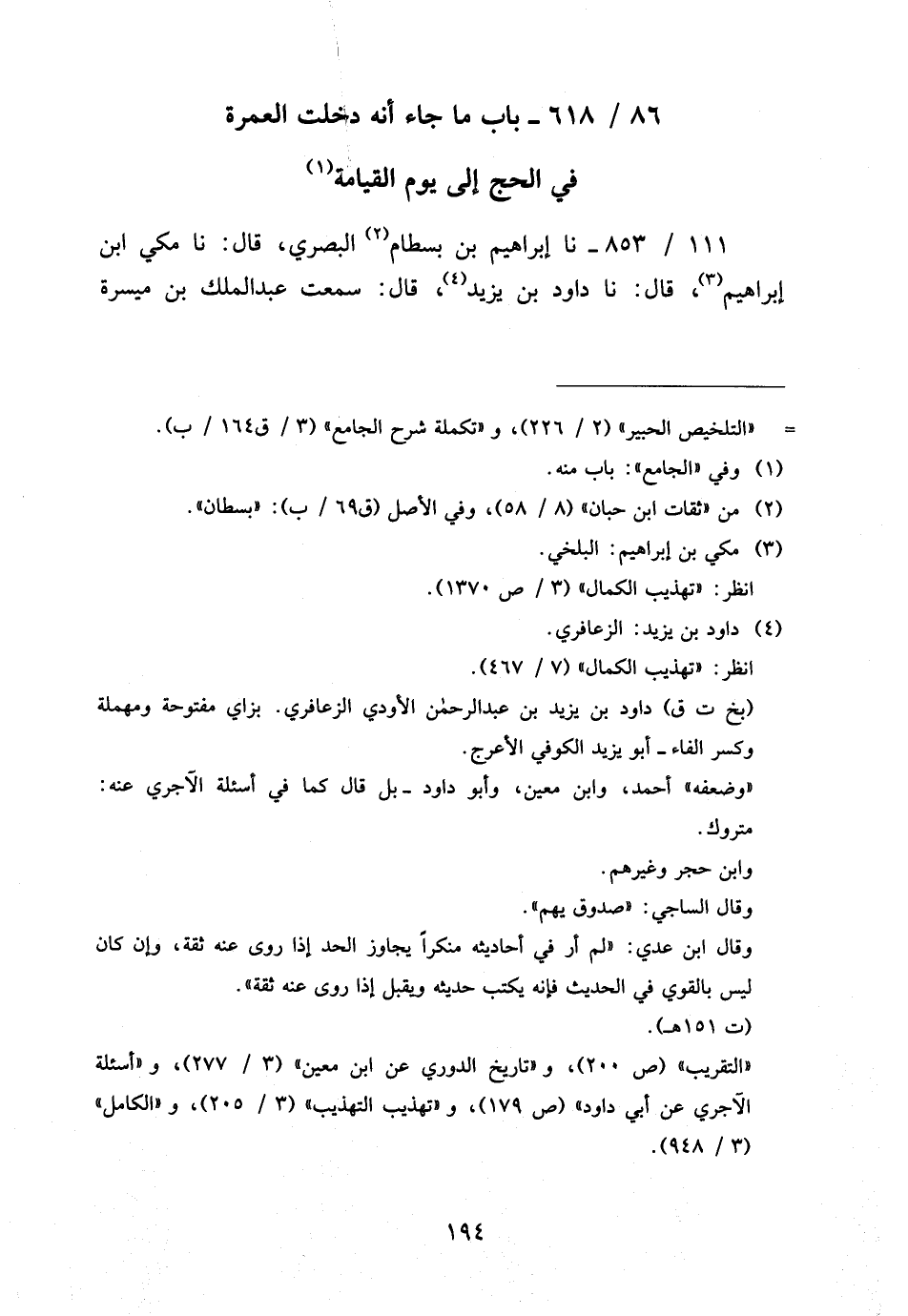 86 - / 618 بَاب مَا جَاءَت أَنَّهُ دَخَلَتِ الْعُمْرَةُ فِي الْحَجِّ إِلَى يَوْمِ الْقِيَامَةِ