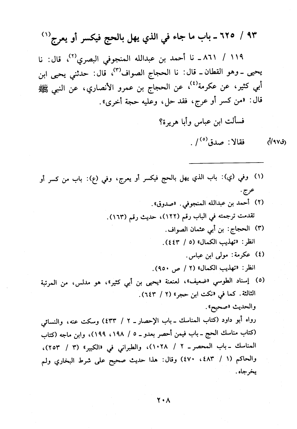 93 - / 625 بَابُ مَا جَاءَ فِي الَّذِي يُهِلُّ بِالْحَجِّ فَيُكْسَرَ أَوْ يَعْرُجَ