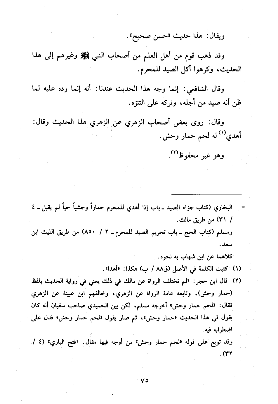 وَقَالَ رَوَى بَعْضُ أَصْحَابِ الزُّهْرِيِّ عَنِ الزُّهْرِيِّ هَذَا الْحَدِيثَ وَقَالَ أُهْدِيَ لَهُ لَحْمُ حِمَارِ وَحْشٍ