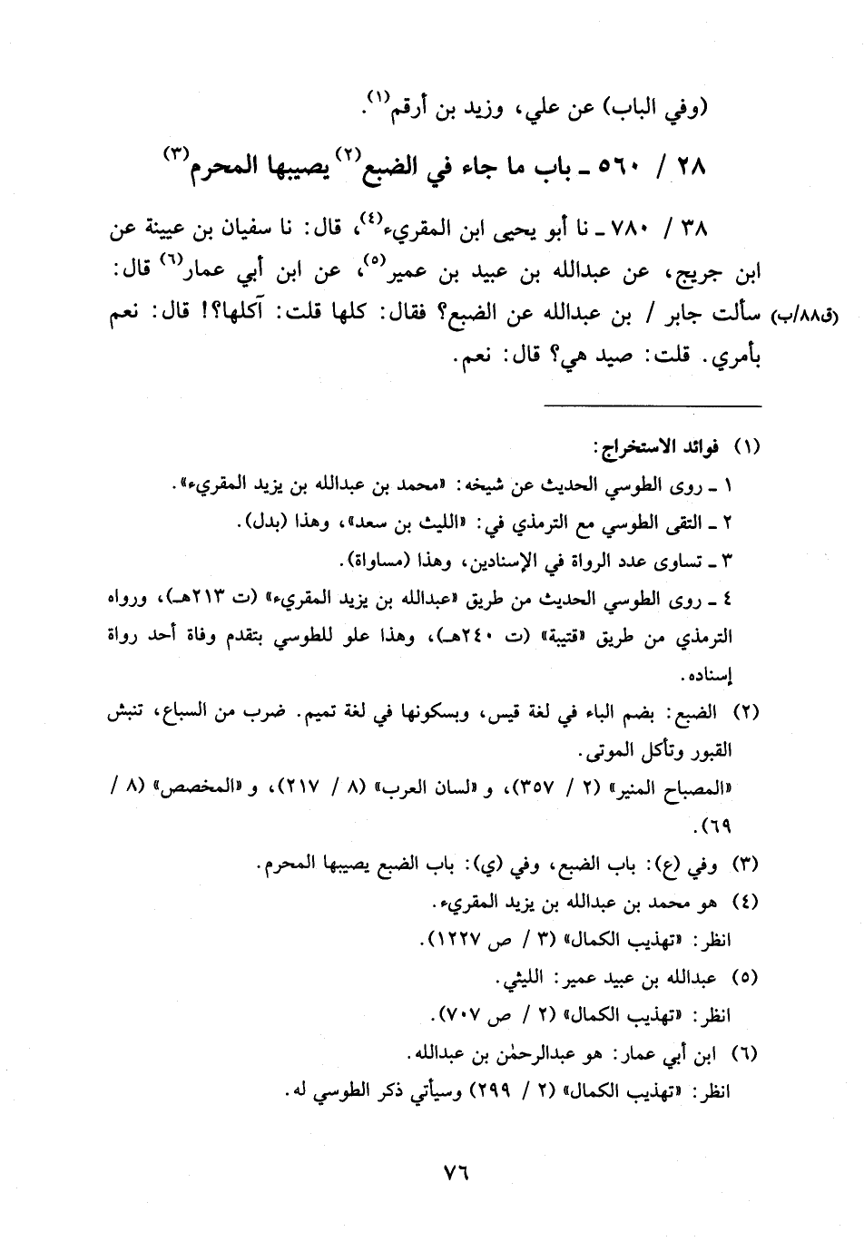 38 - / 780 نَا أَبُو يحيى ابْن المقريء قَالَ نَا سُفْيَانُ بْنُ عُيَيْنَةَ عَنِ ابْنِ جُرَيْجٍ عَنْ عَبْدِ اللَّهِ بْنِ عُبَيْدِ بْنِ عُمَيْرٍ عَنِ ابْنِ أَبِي عَمَّارٍ قَالَ سَأَلْتُ جَابِرَ بْنَ عَبْدِ اللَّهِ عَنِ الضَّبُعِ فَقَالَ كُلْهَا قُلْتُ آكُلُهَا قَالَ نَعَمْ بِأَمْرِي قُلْتُ صَيْدٌ هِيَ قَالَ نَعَمْ